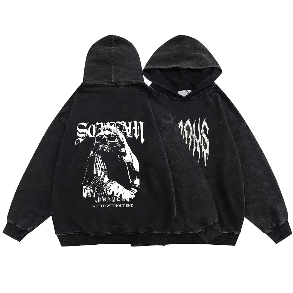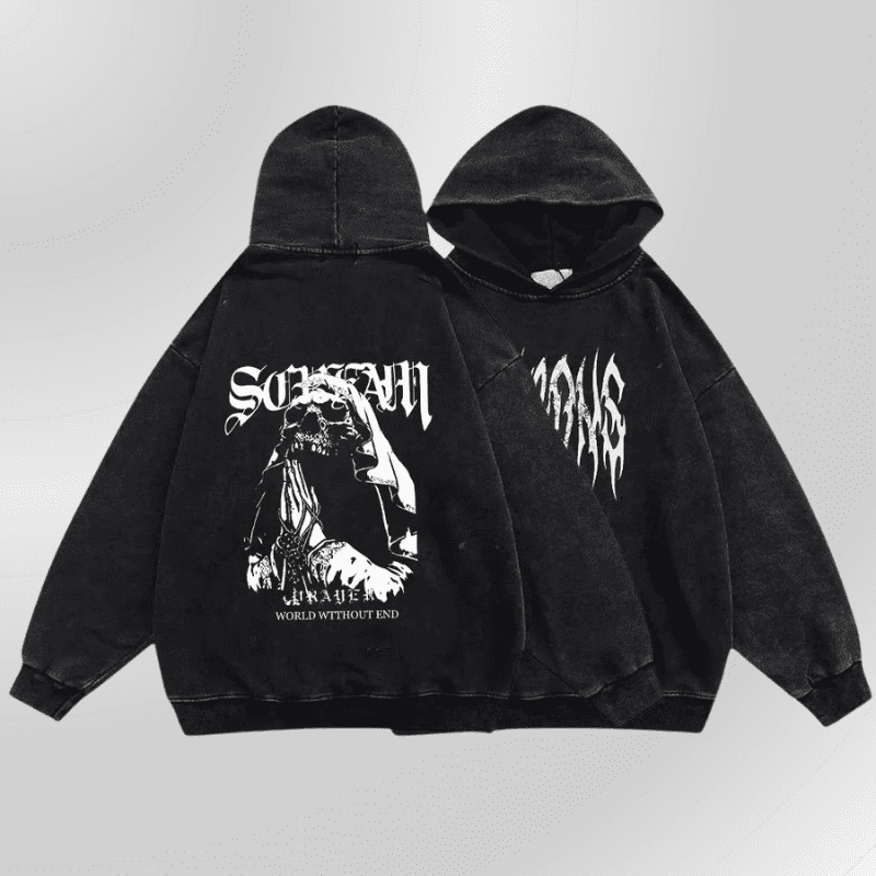 Alternatiivne must kapuutsiga grunge-pusa „Pray“