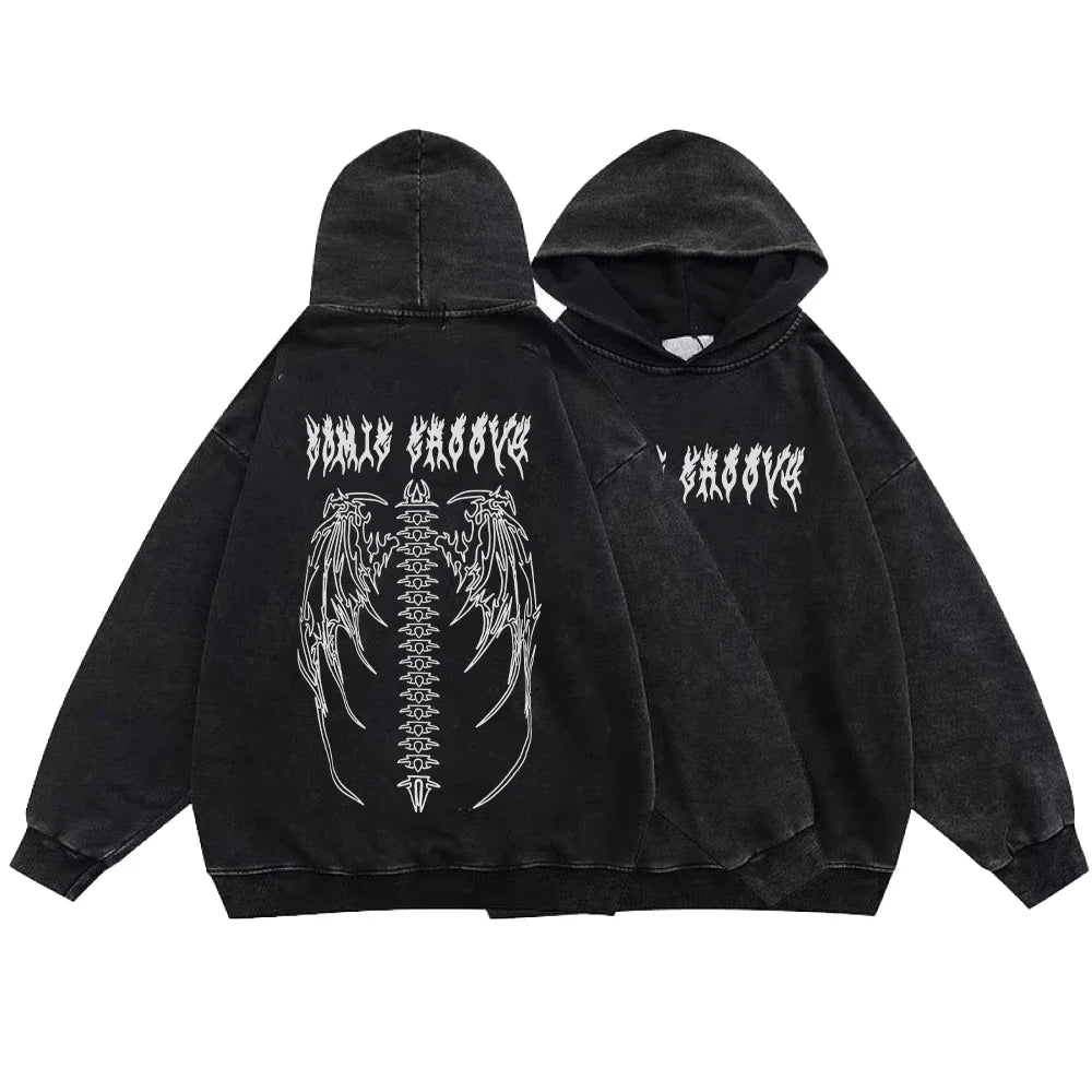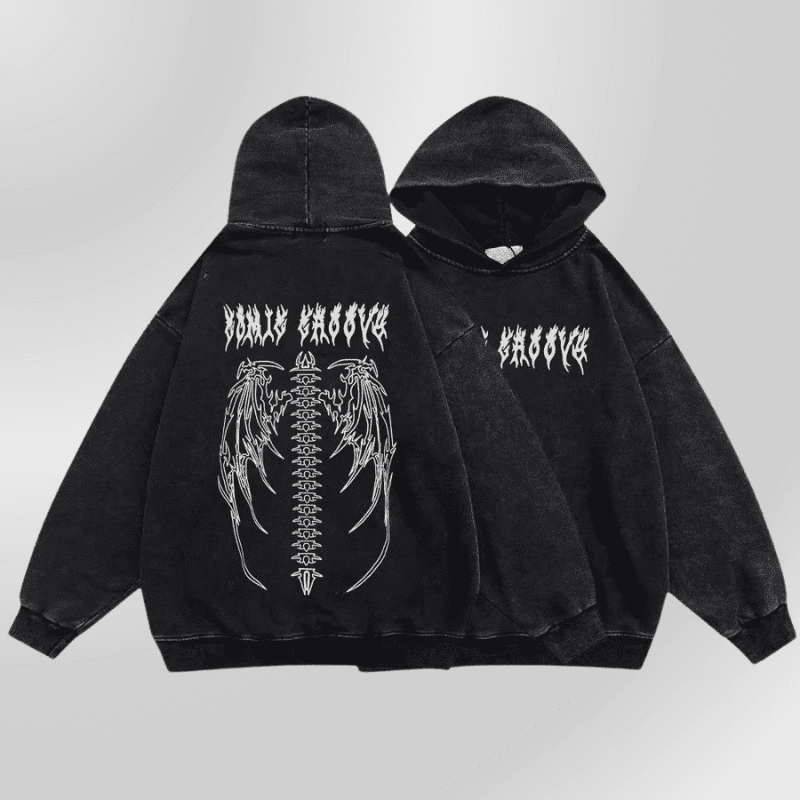 Alternatiivne must kapuutsiga grunge-pusa „Bones“