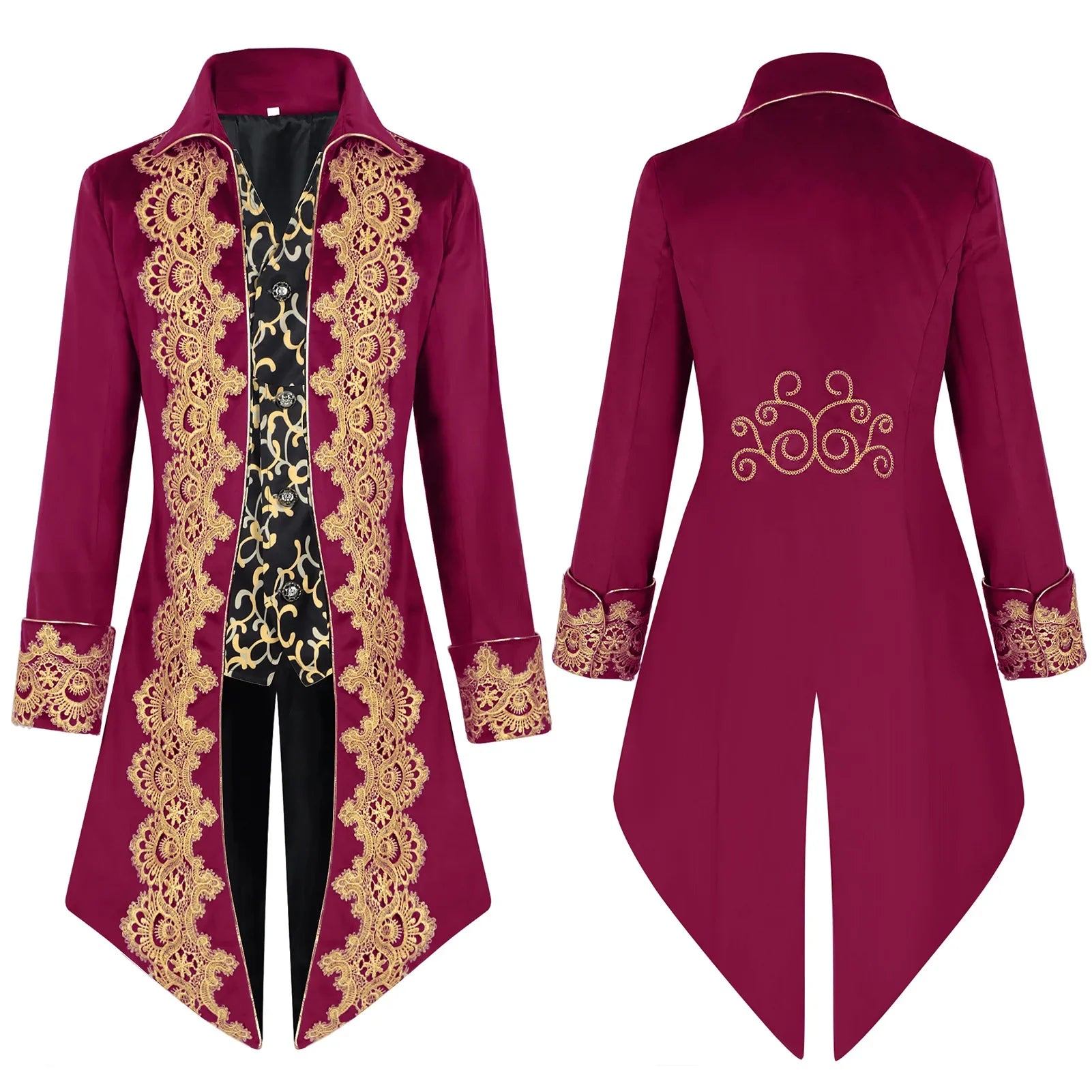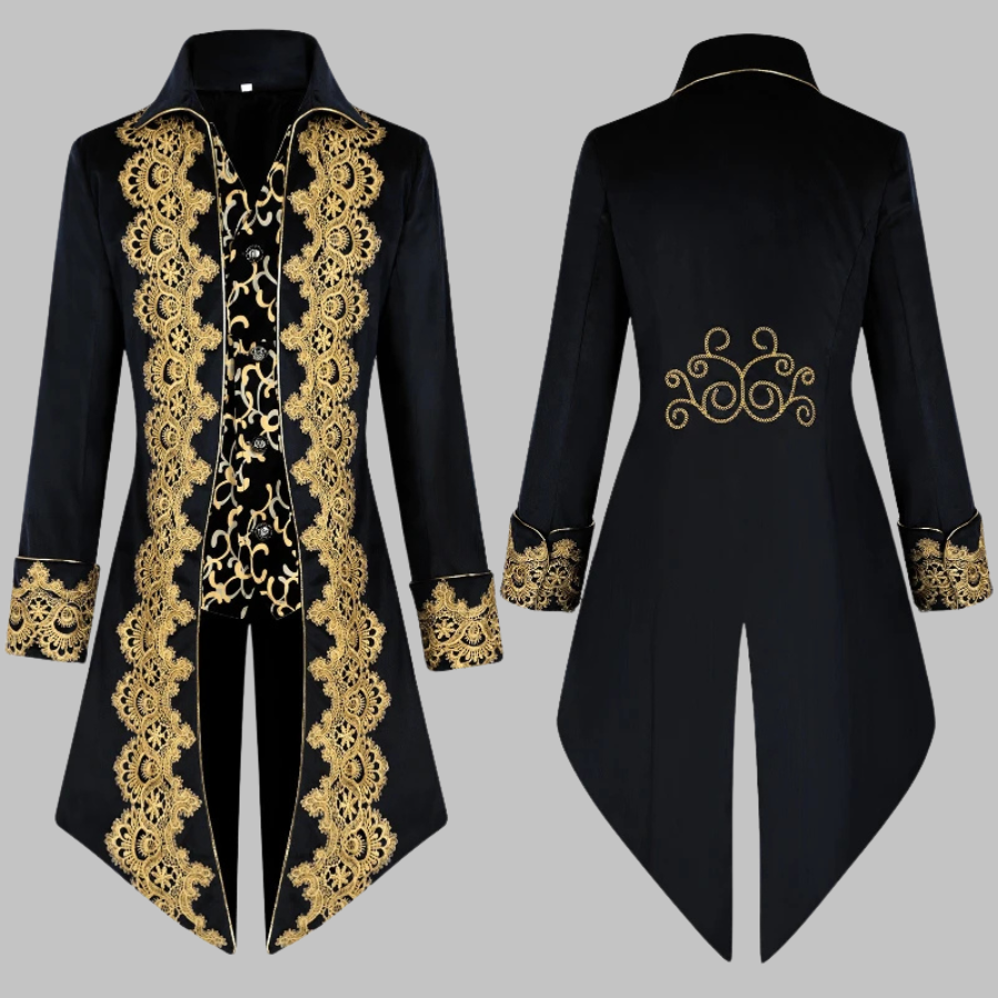 Barokkstiilis gooti pintsak kuldse pitsiga meestele