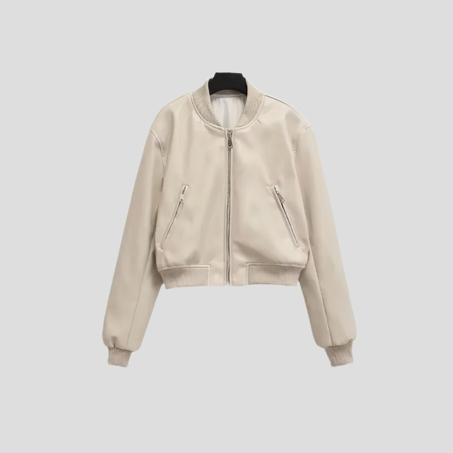 Beež punk-rock bomberjakk tõmblukkide ja soonikvarrukatega