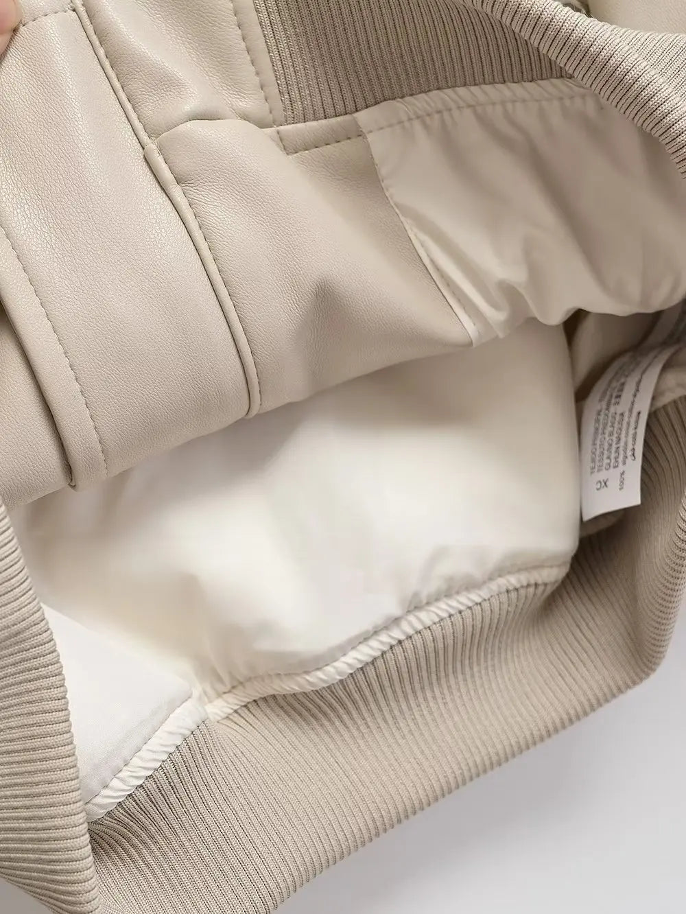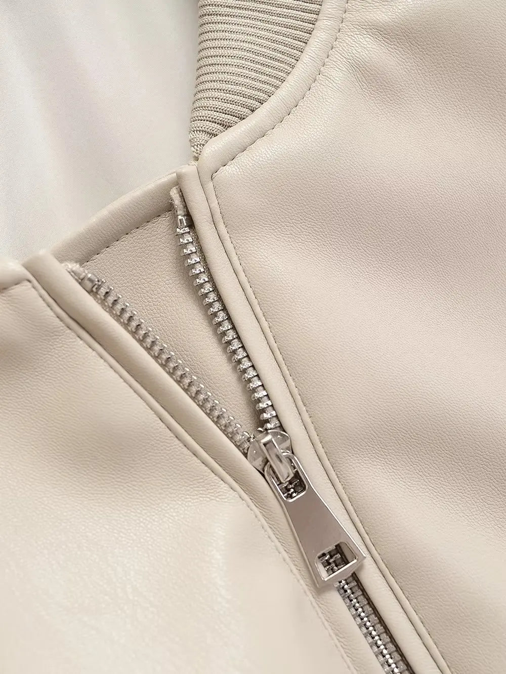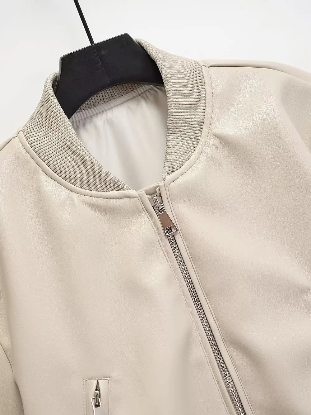Beež punk-rock bomberjakk tõmblukkude ja soonikmansettidega Vaata valikuid
