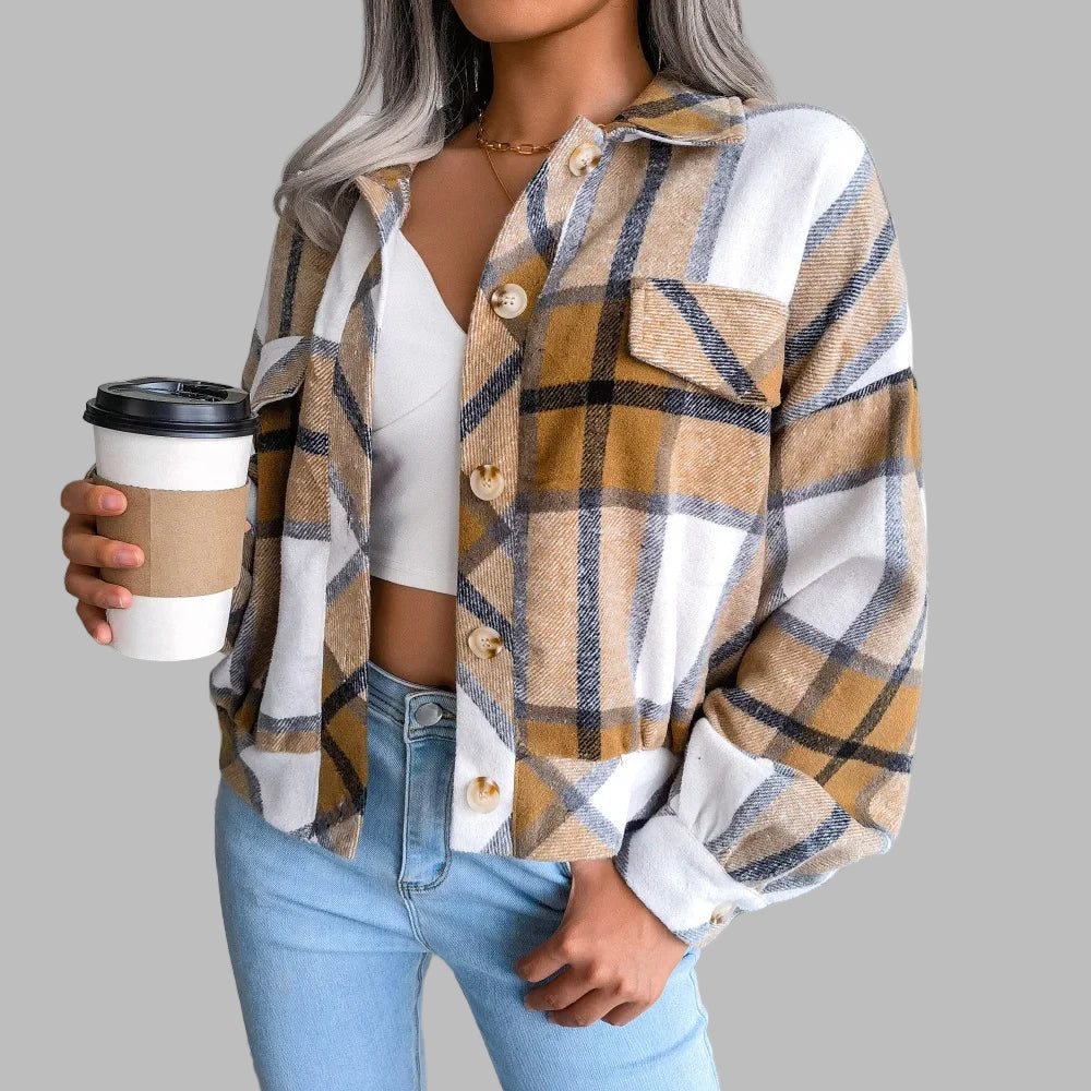 Beež ruuduline grunge-särk taskutega Vaata valikuid