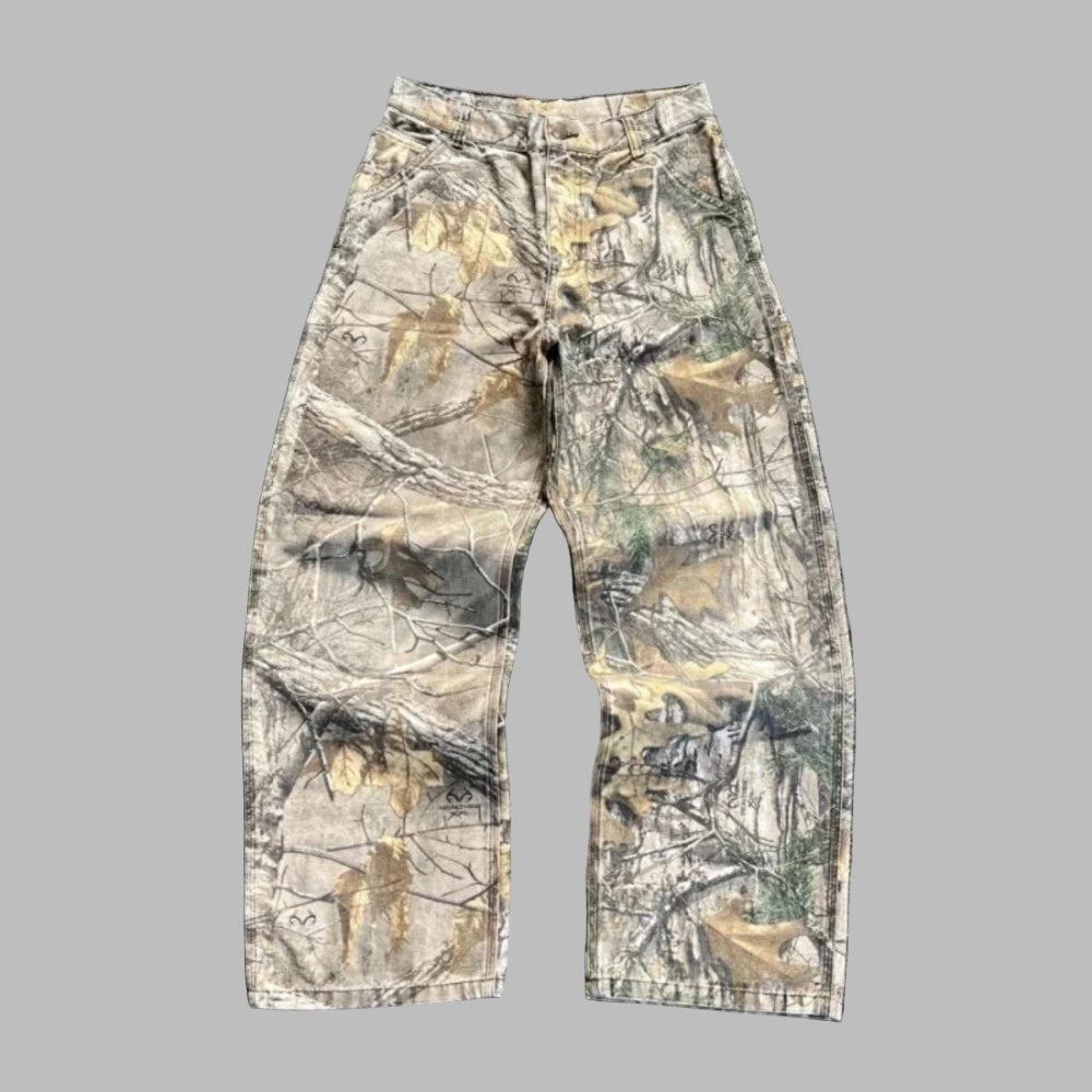 Bežid lehekamuflaažiga cargo‑püksid, techwear style