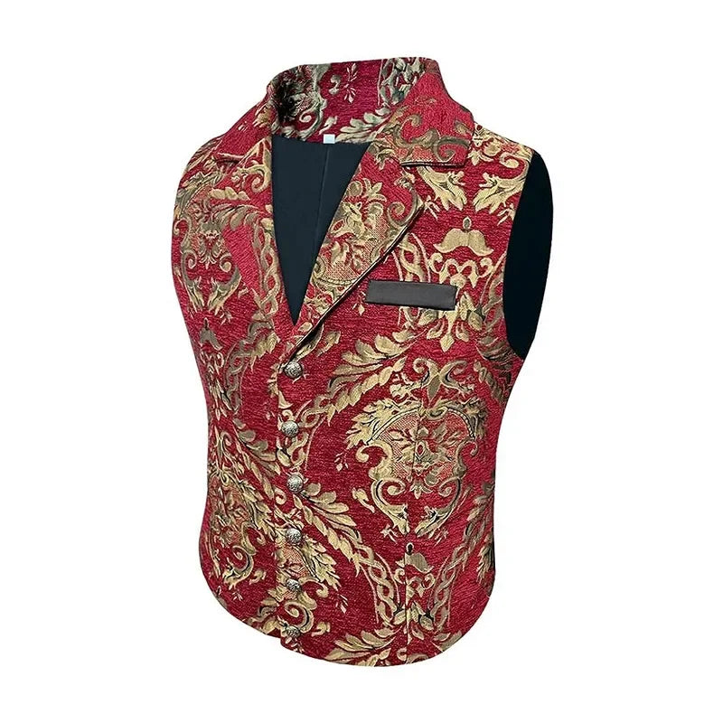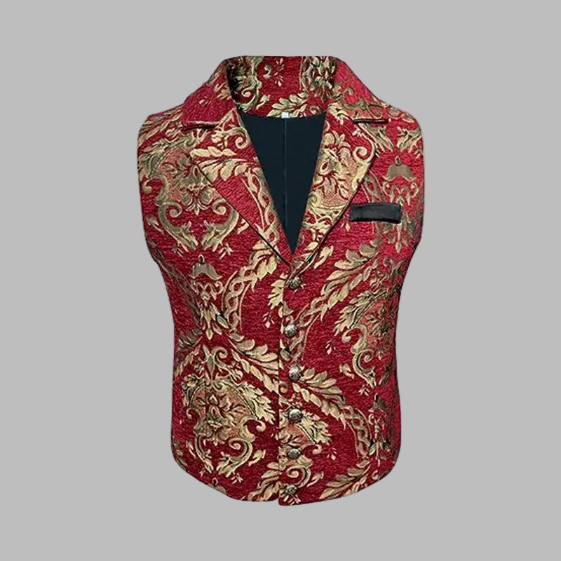 Elegantne punase ja kuldse brokaadiga steampunk-vest