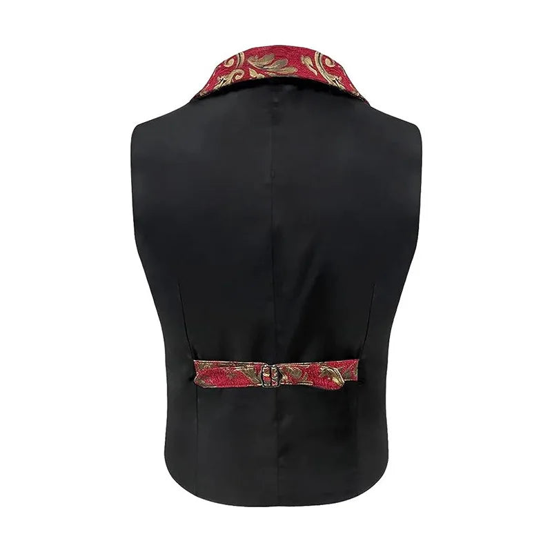 Elegantne punase ja kuldse brokaadiga steampunk-vest Vaata valikuid