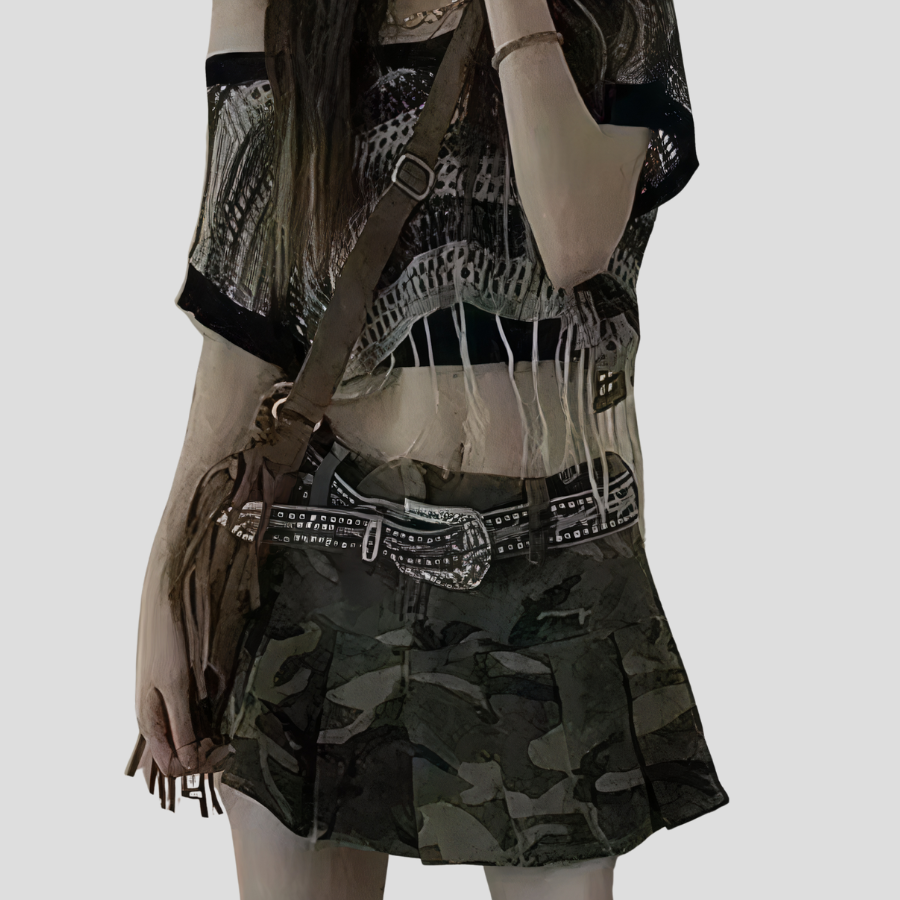 Gotika stiilis miniatuurne plisseeritud seelik kamo mustriga - alternatiivne miniseelik