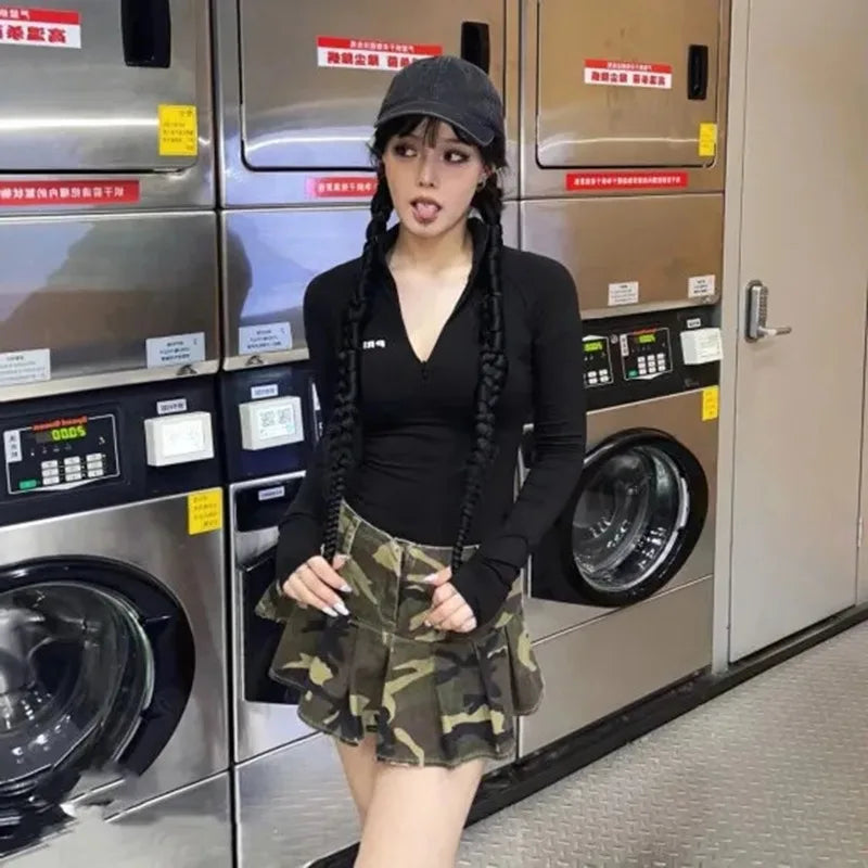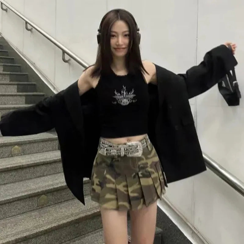 Gotika stiilis lühike plisitud seelik kamo mustriga - alternatiivne mini seelik