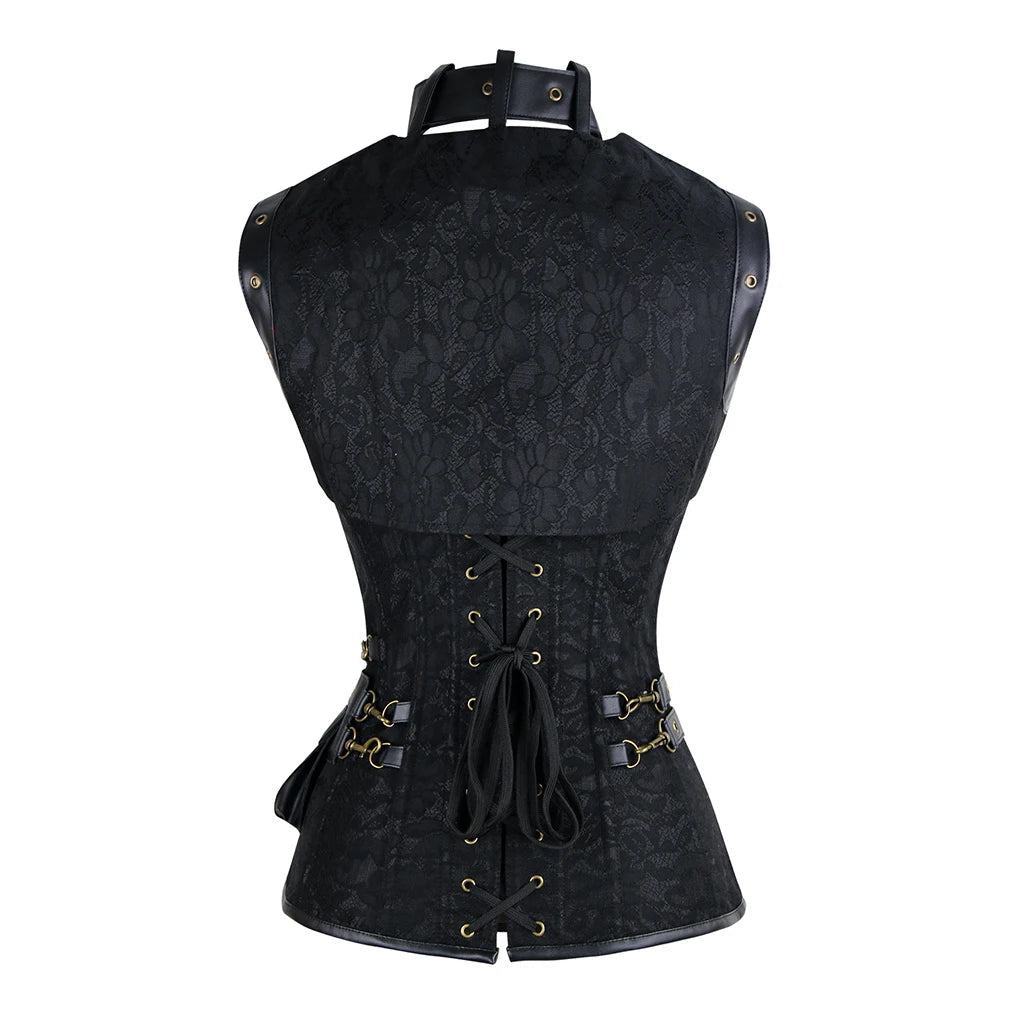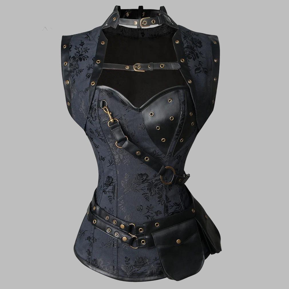 Gotycki steampunk-korsett lillemustriga ja nahkrihmadega