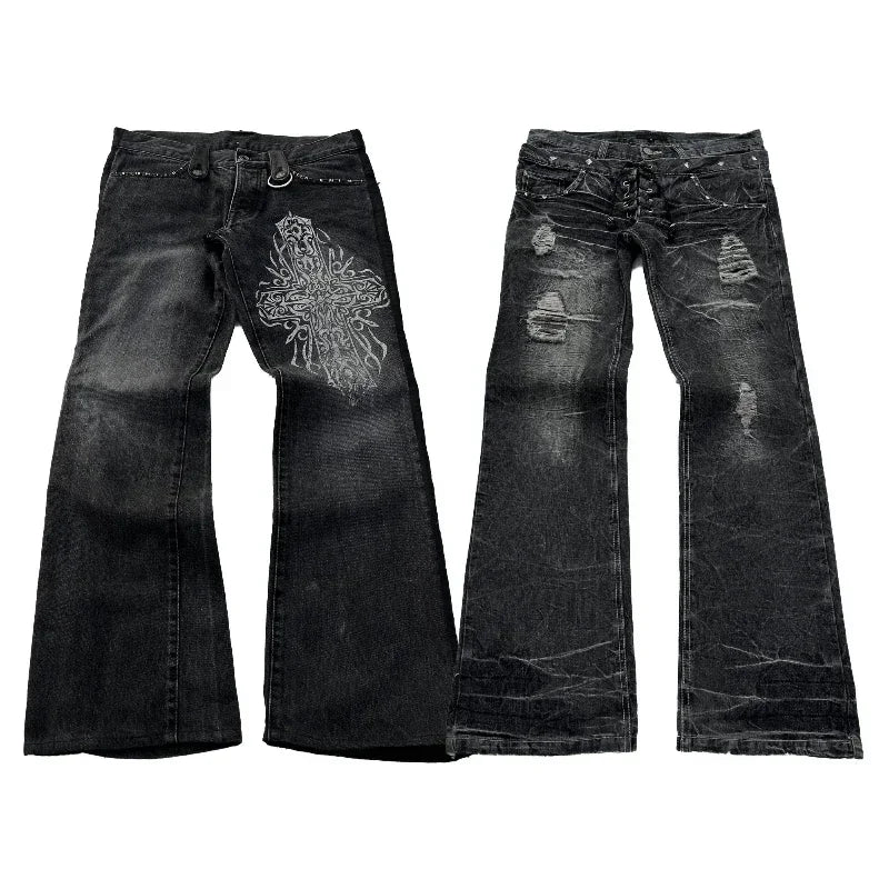 Grunge laienevad kulutatud teksad gooti tikanditega 2