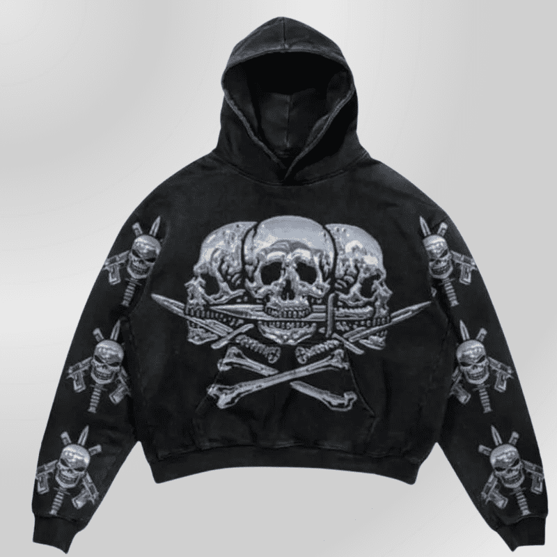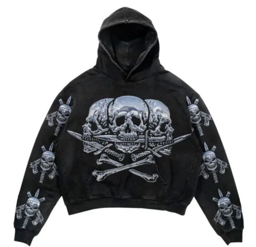 Grunge kapuutsiga piraadiluustikuga bluus Vaata valikuid