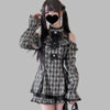 Hall ruuduline Jirai Kei õlalõikega pitskleit