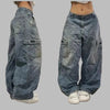 Hallid grunge-stiilis punk cargo teksapüksid taskutega
