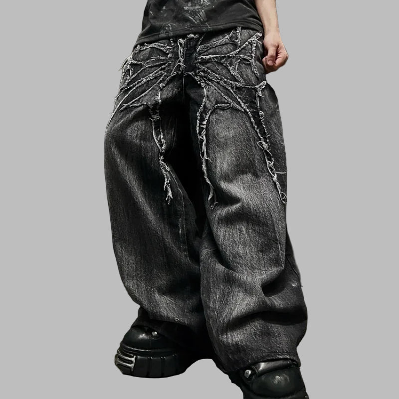 Hallid rebitud baggy teksapüksid kettidega, punk-metal, unisex