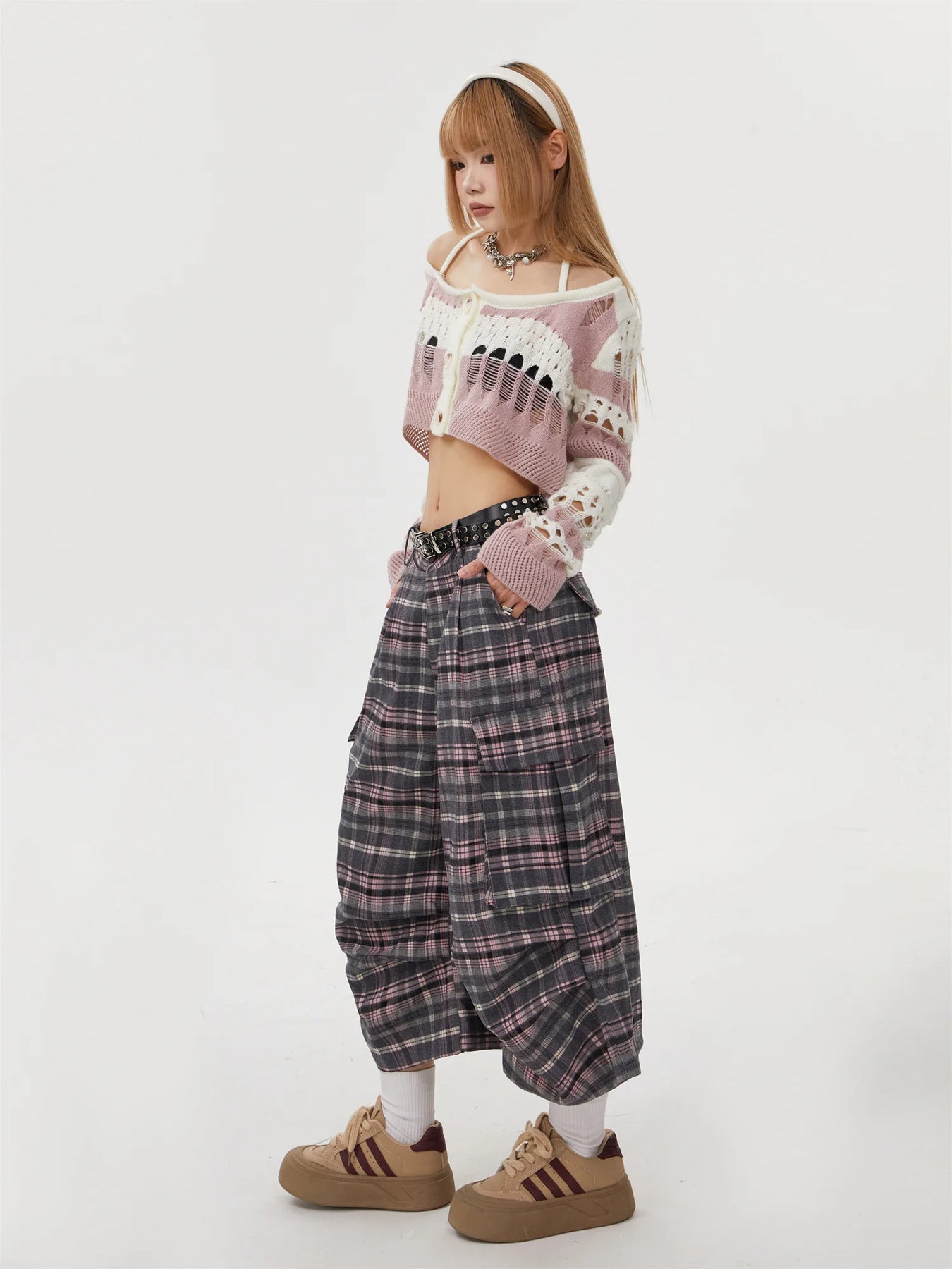 Hallikasroosad ruudulised pitsiga punk rock püksid