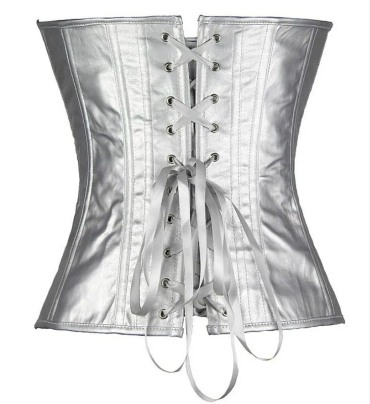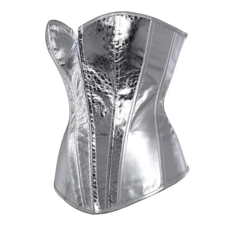 Metallist korsett hõbedase maona naha efektiga ja luustikuga 7XL