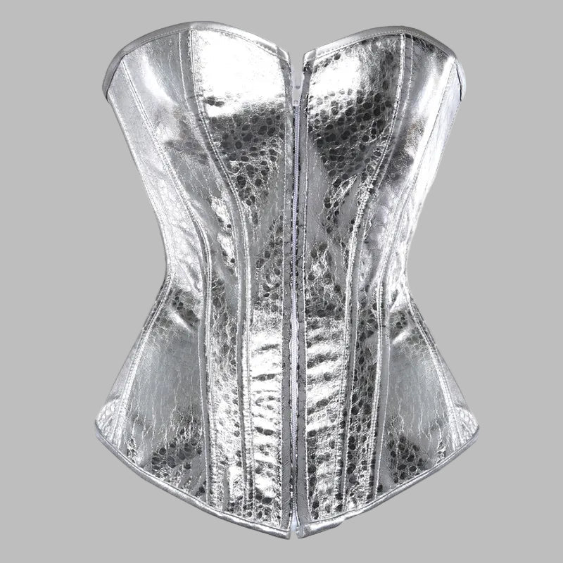 Hõbedane metallkorsett madu­nahast efektiga ja luustikuga
