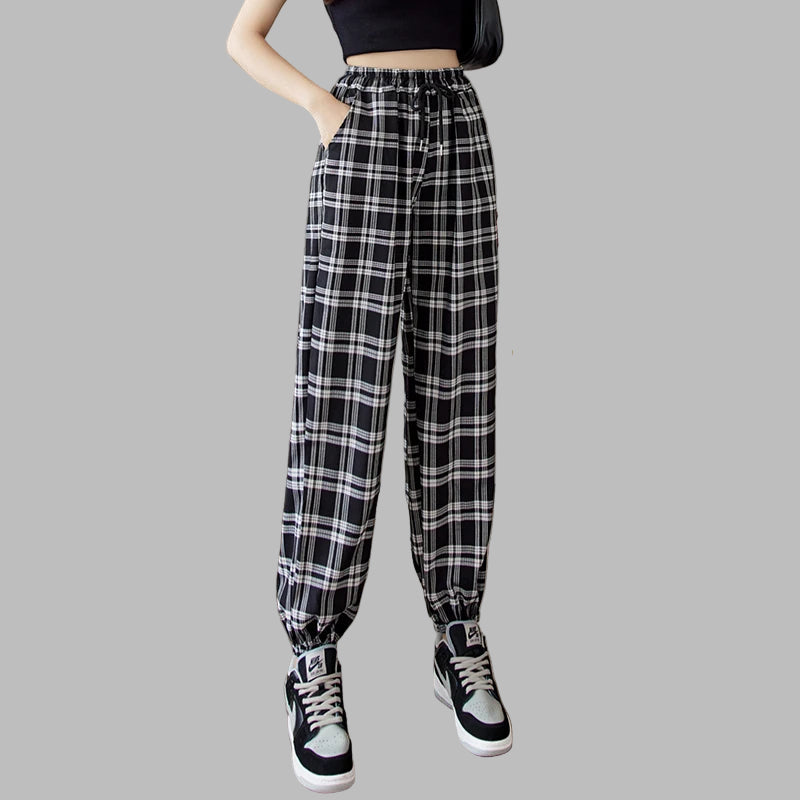 Jirai Kei mustriga mustvalged ruudulised jogger-püksid