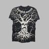 Khaki punk-metal T-särk kalaluustikuga seljal