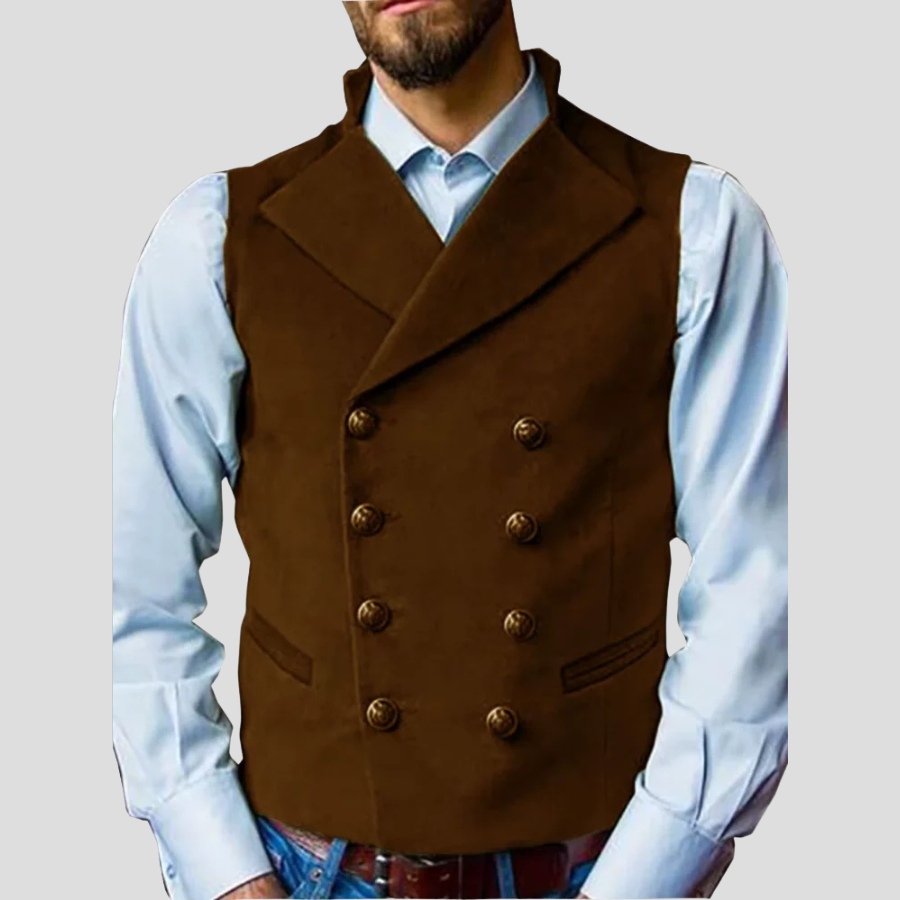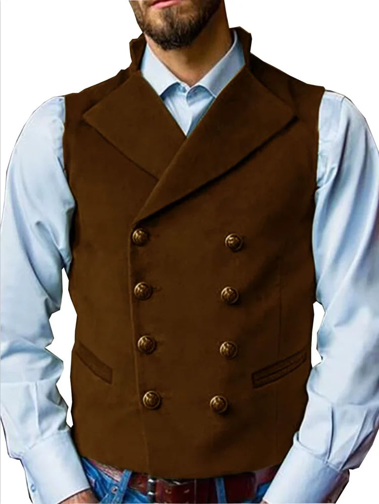 Klassikaline pruun kahekordse nööbireaga steampunk‑vest