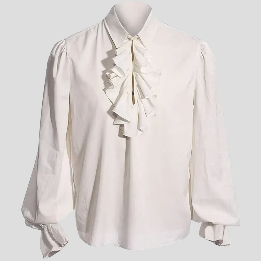 Kreemikas rokk-särk volangide ja puhvis varrukatega