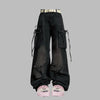 Laiad mustad kulutatud punk-stiilis cargo taskutega püksid