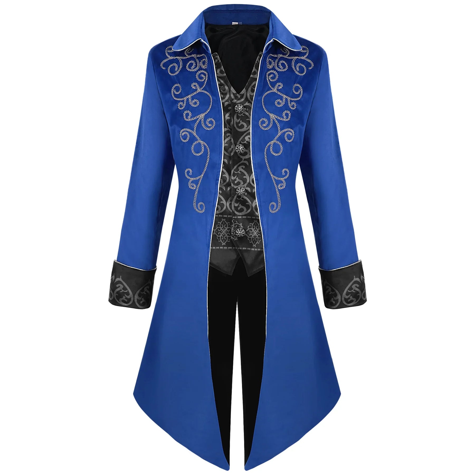 Sinine gooti stiilis keskaegne meeste pintsak hõbedaste kaunistustega