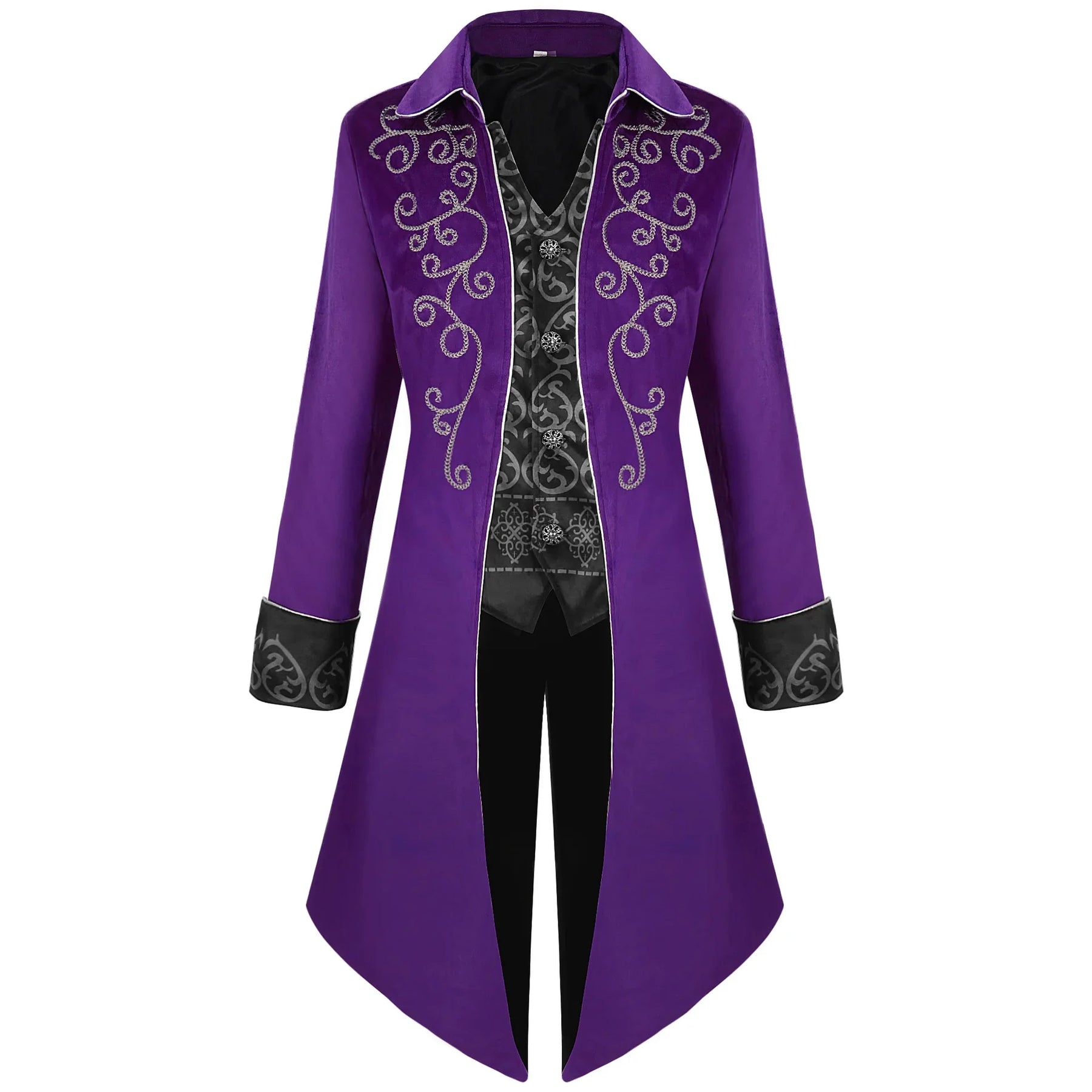 Meeste gooti stiilis keskaegne violetne pintsak hõbedaste kaunistustega