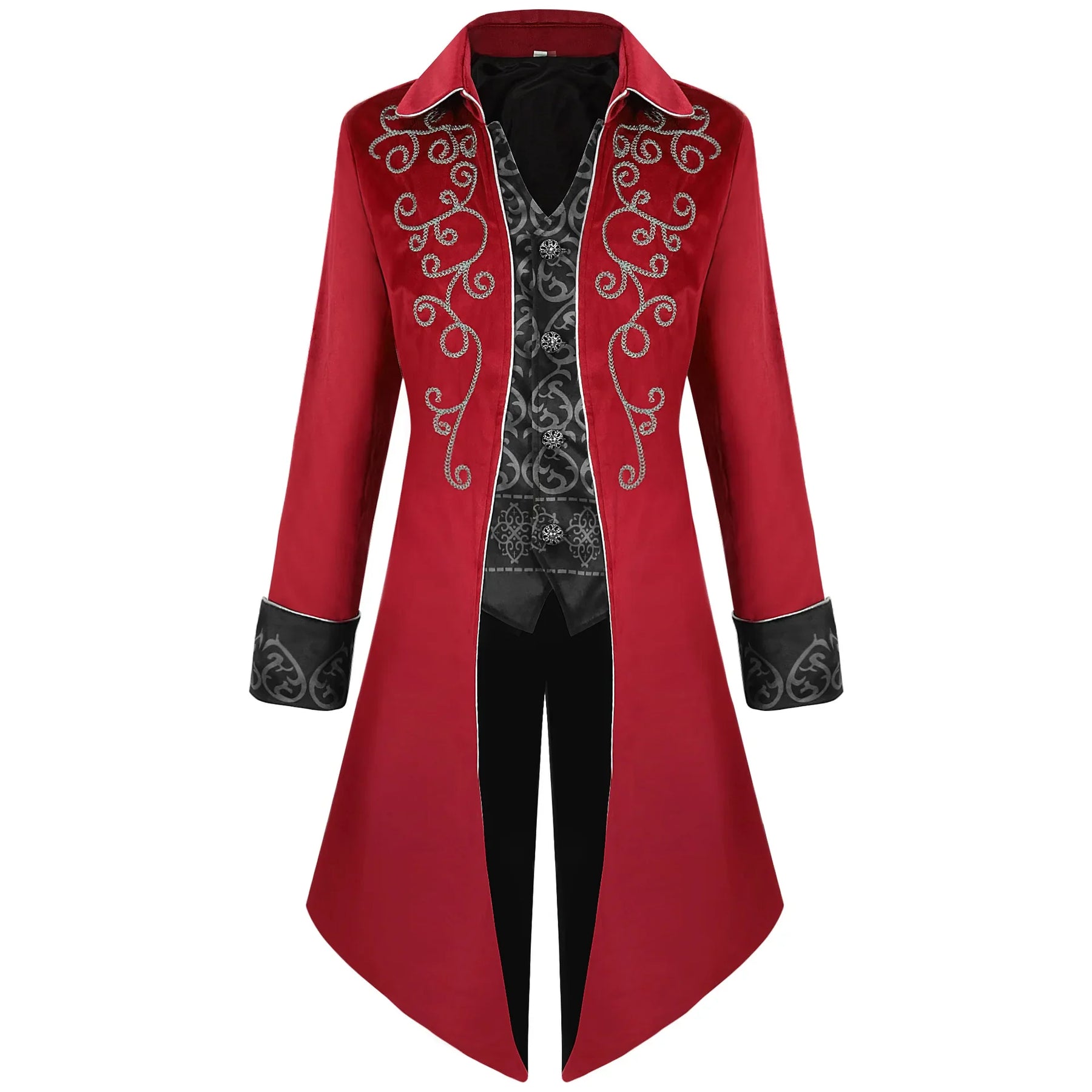 Punane gooti stiilis keskaegne meeste pintsak hõbedaste kaunistustega