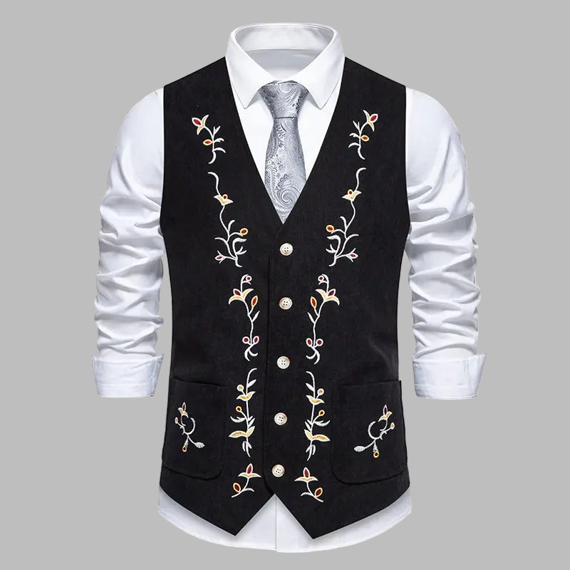 Meeste must steampunk-tikandiga lilleline vest Vaata valikuid