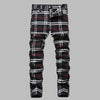 Meeste musta-puna-valge ruuduline punk rock stiilis püksid