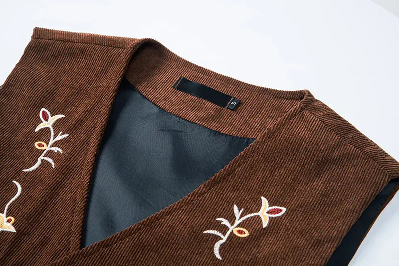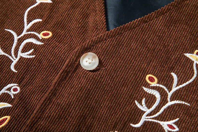 Steampunk pruun meeste vest lillelise tikandiga XXL