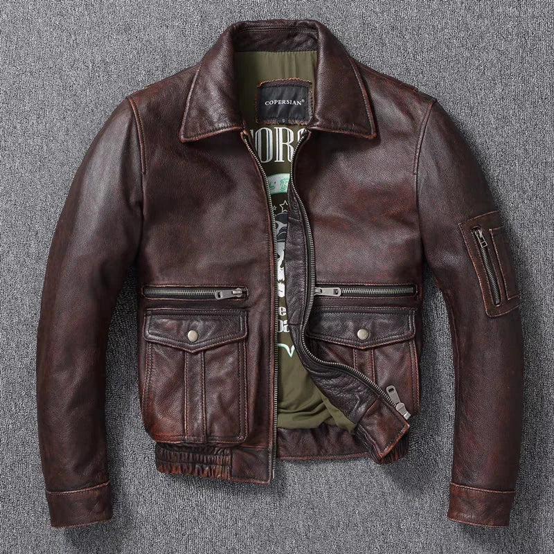 Meeste pruun vintage steampunk nahkpiloodijakk