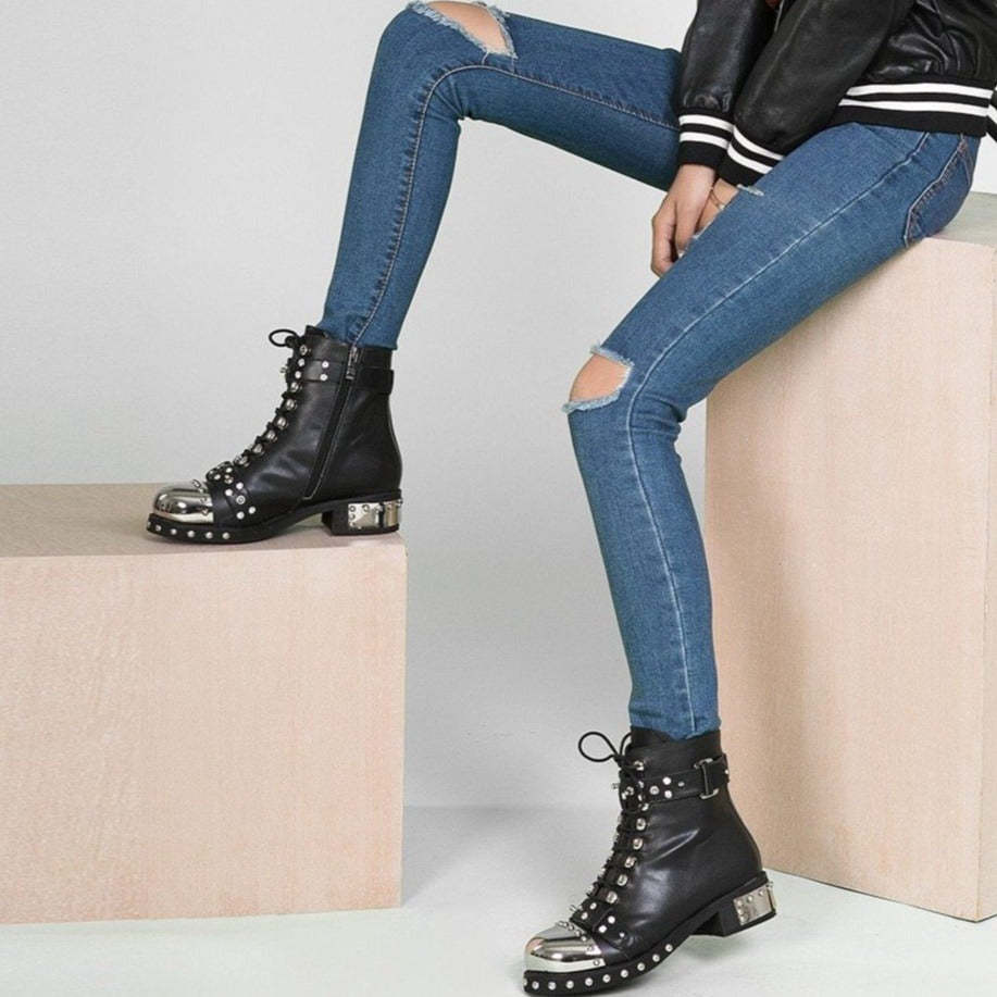 - Kaunistused: dekoratiivsed rauast needid, kand ja kinga esiosa tugevdatud metalliga