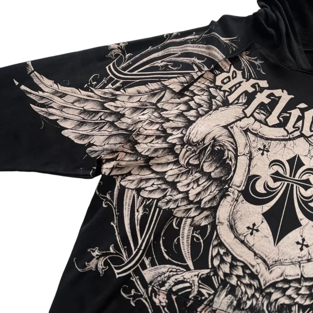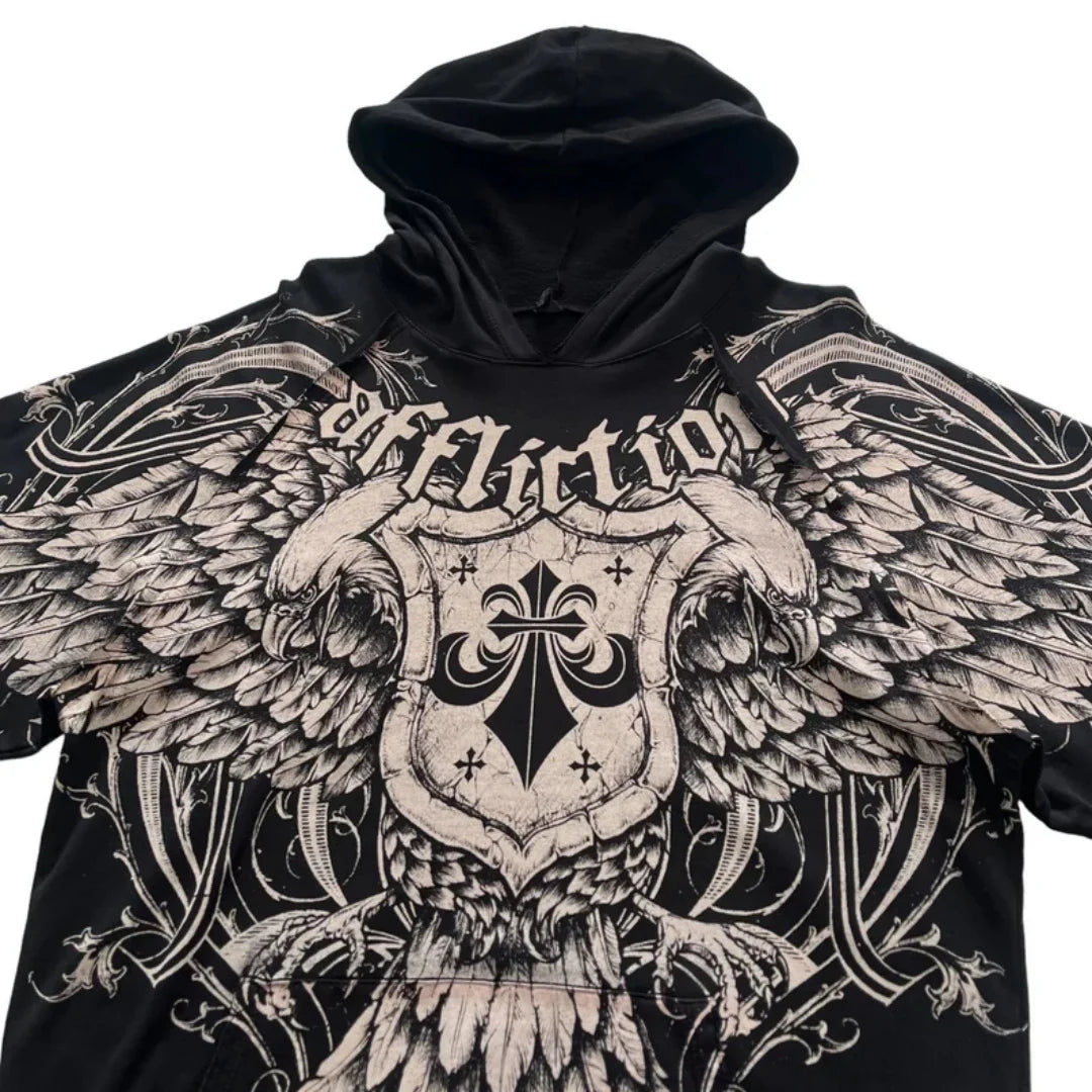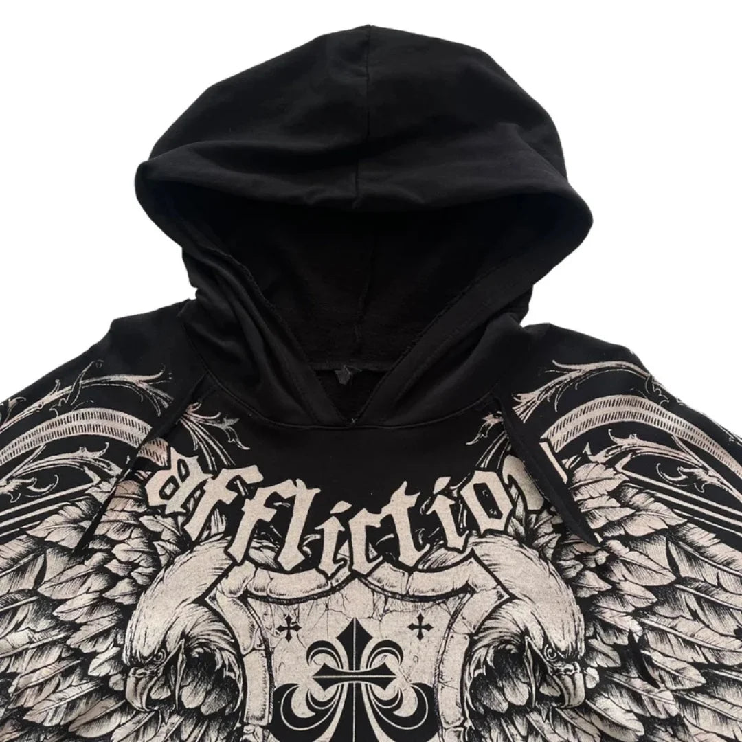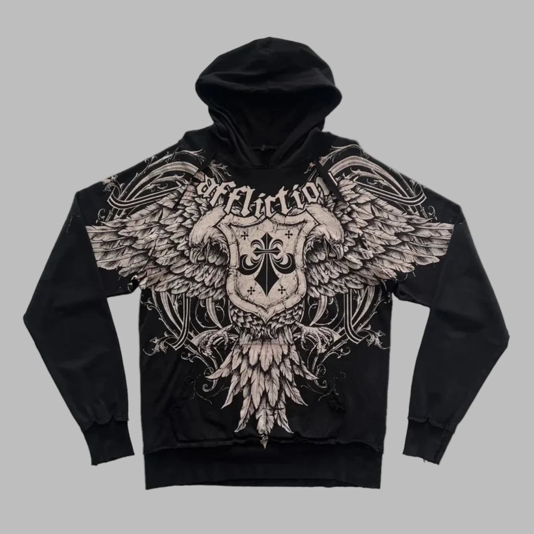 Must Afflictioni kotkakujundiga rokk-kapuutsipluus tiibadega