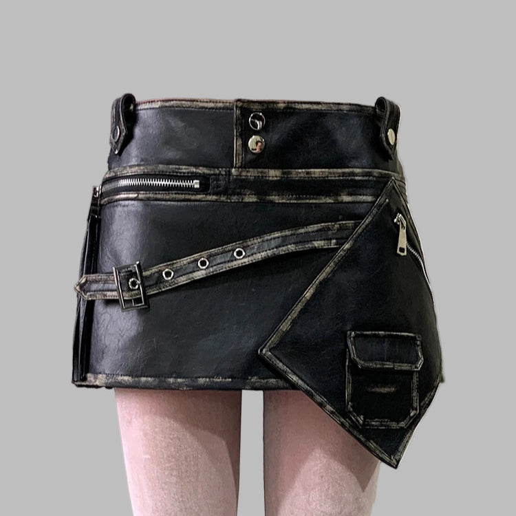 Must asümmeetriline steampunk-nahkseelik vööde ja pannaldega