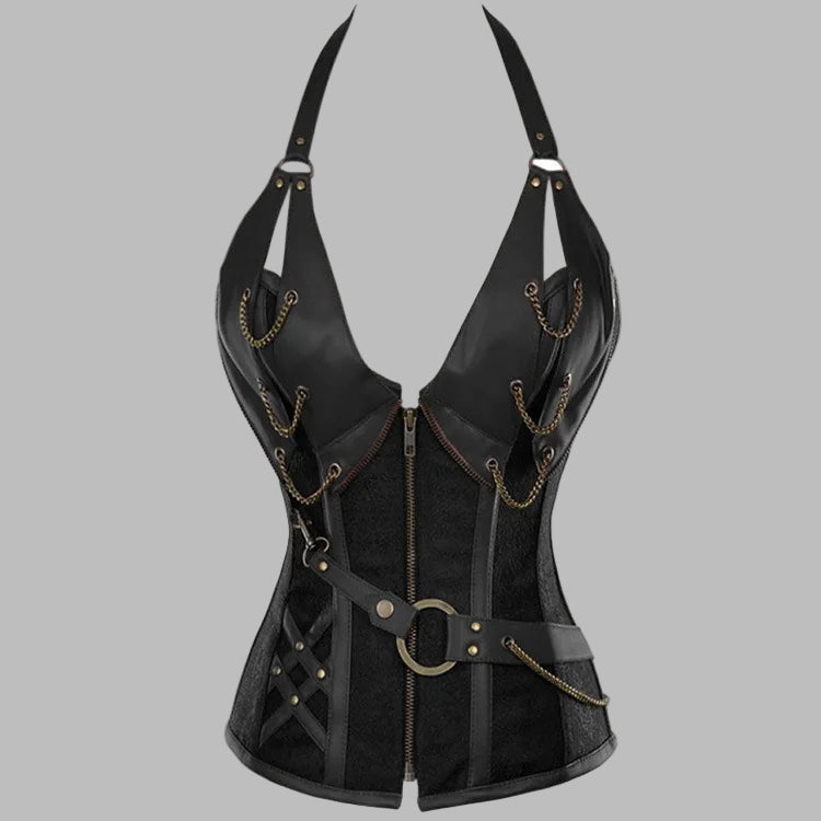 Must gotiikapunk-korsett kettide ja nahkdetailidega