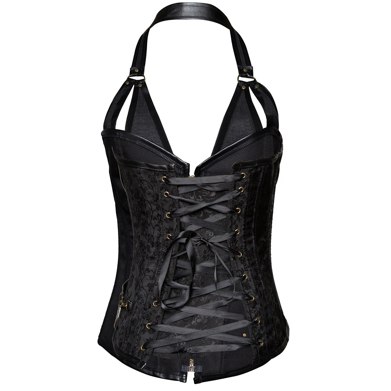 Must gotiikapunk-korsett kettide ja nahkdetailidega Vaata valikuid