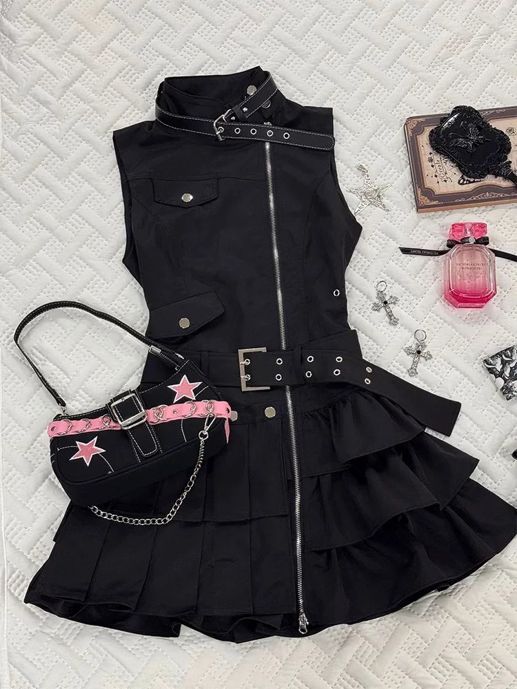 Must gotiiklik naistekleit volangide, lukkude ja triipudega