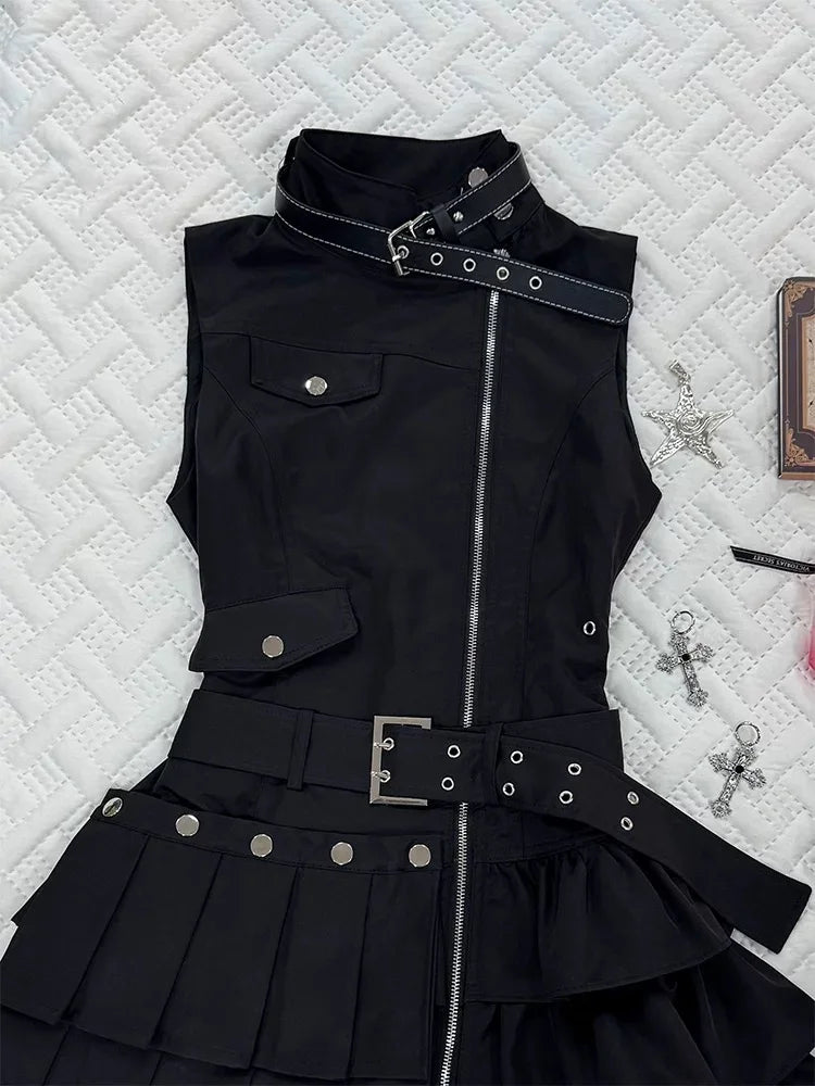 Must gotiiklik naisterõivas kleit triipude, luku ja volangidega