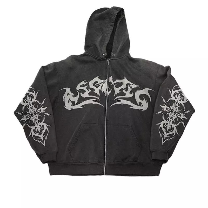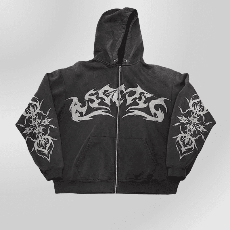 Must grunge-stiilis gooti kapuutsiga pusa - leekidega