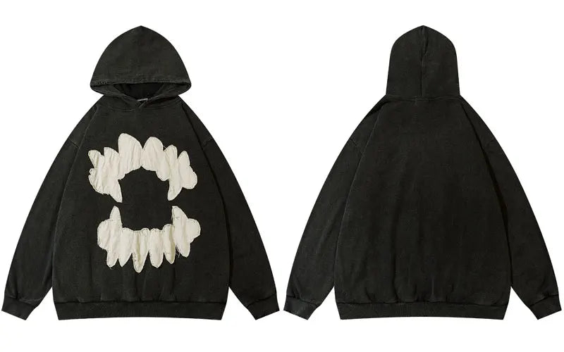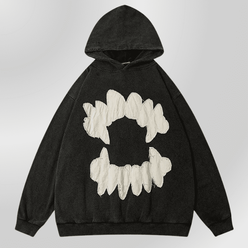 Must grunge kapuutsiga pusa - Agressive valge trükiga
