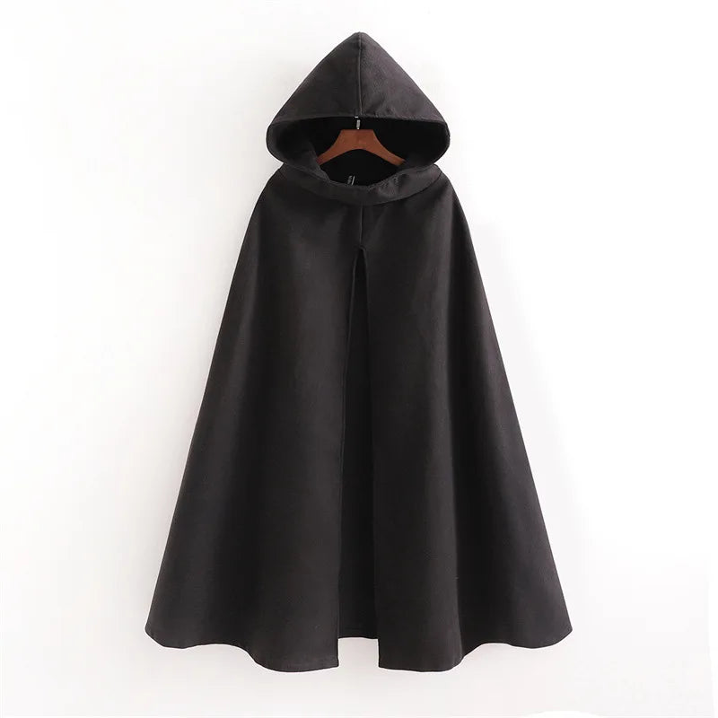 Must keskmise pikkusega kapuutsiga keep - naiselik nõiastiil