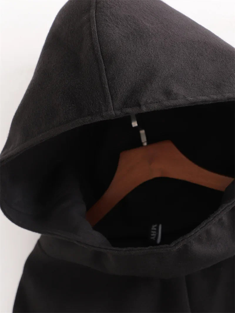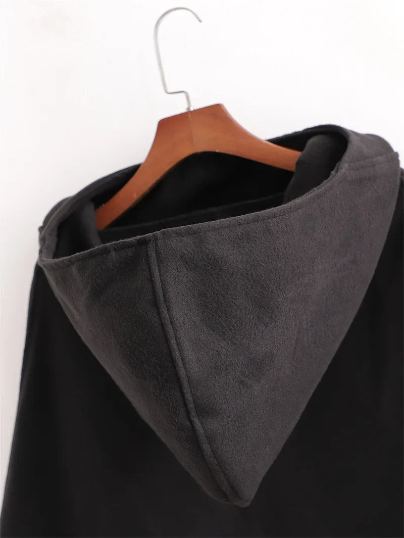 Must keskmise pikkusega kapuutsiga keep - naiste nõiastiil, must