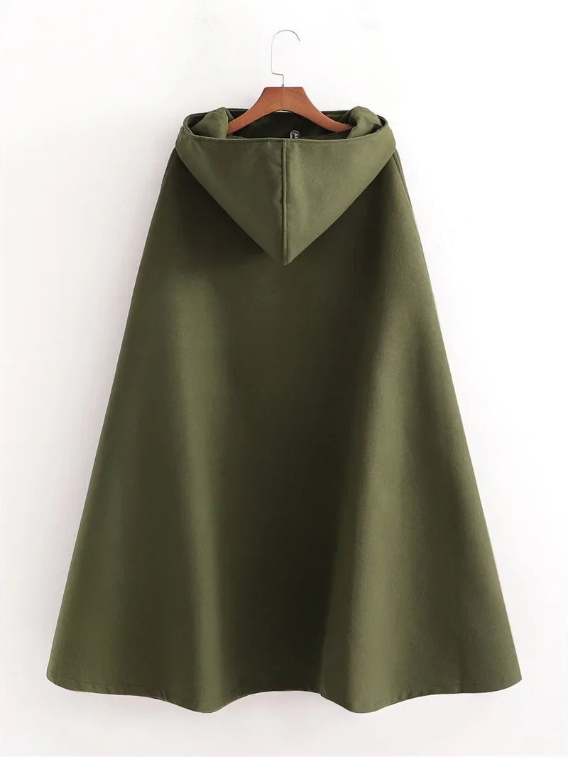 Must poolpikk kapuutsiga keep - naiste nõiastiil, roheline