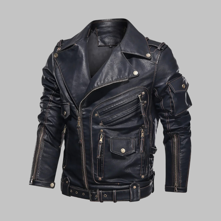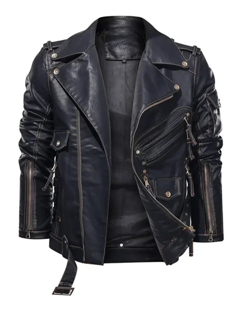 Must kunstnahast meeste rock-stiilis mootorrattajakk