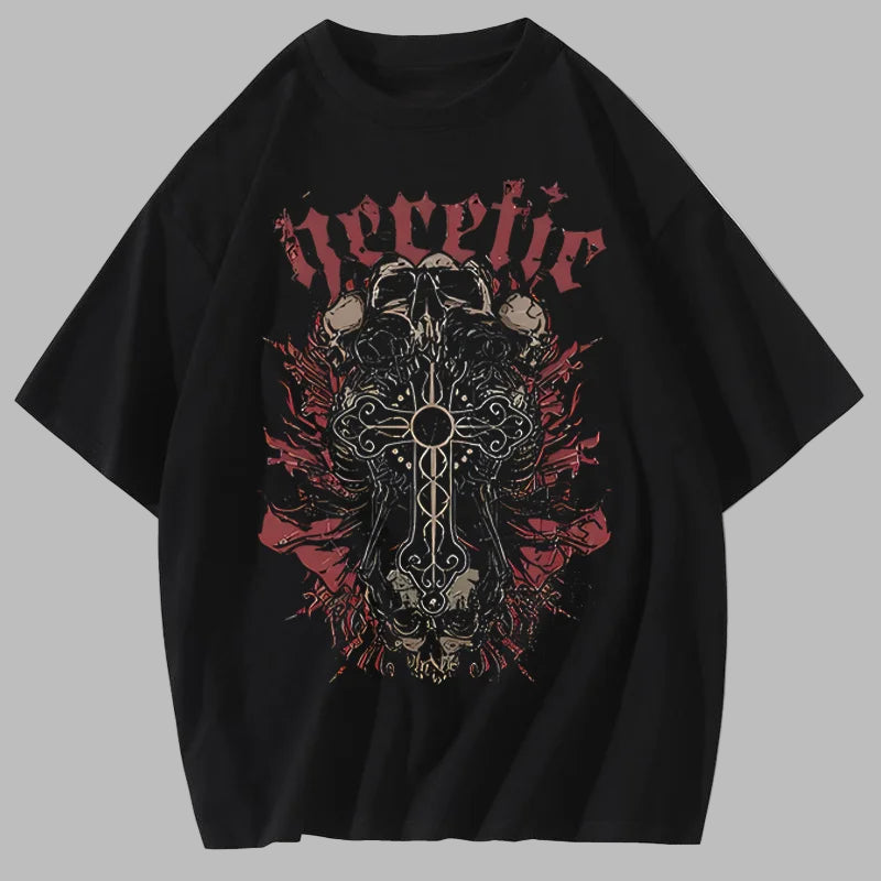 Must metal-särk ristide ja koljudega
