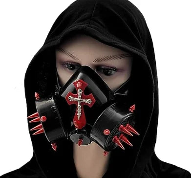 Must metallmask punase risti ja neetidega Vaata valikuid