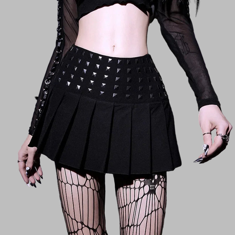 Must miniseelik neetidega, plisseeritud, grunge-stiilis, naistele
