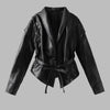 Must nahkne punk-gooti rock-jakk nöörpaeltega