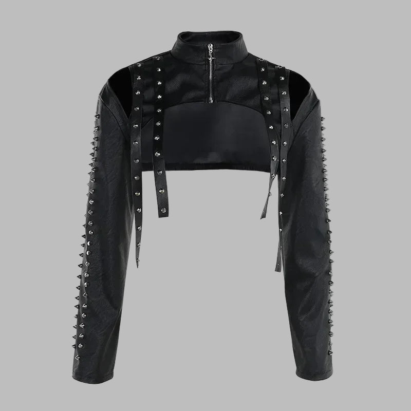Must nahkne punk-goth bolero neetide ja ogadega Vaata valikuid